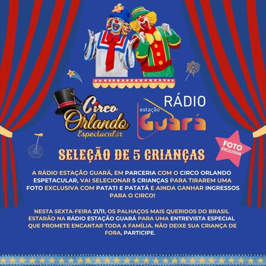 A Rádio Estação Guará, em parceria com o Circo Orlando Espetacular, vai selecionar 5 crianças